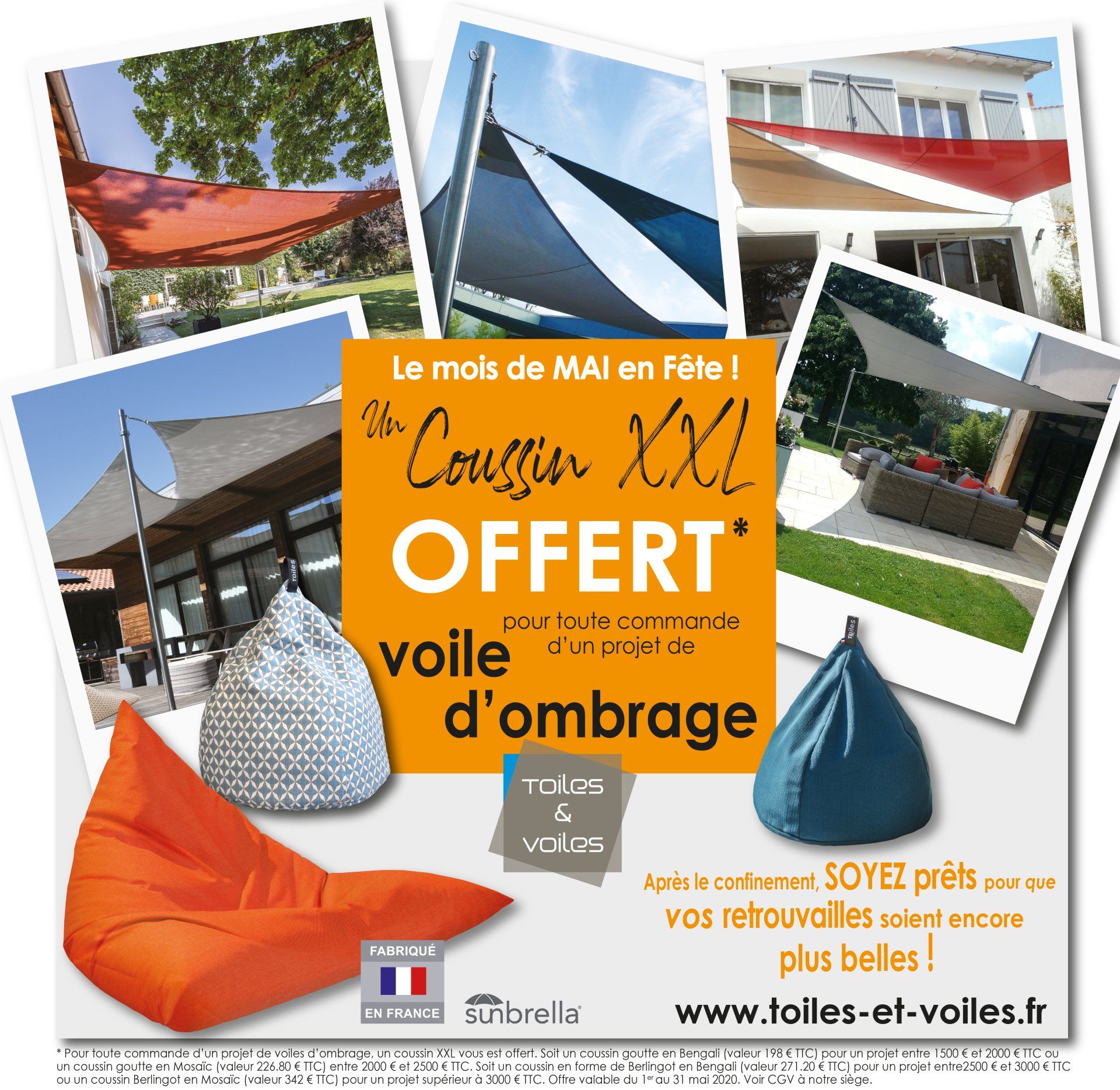 Toiles et Voiles est une entreprise qui conçoit et fabrique des voiles d'ombrage, du mobilier souple d'extérieur et d'intérieur. Fabrication Française, fait main, chaque produit est unique.